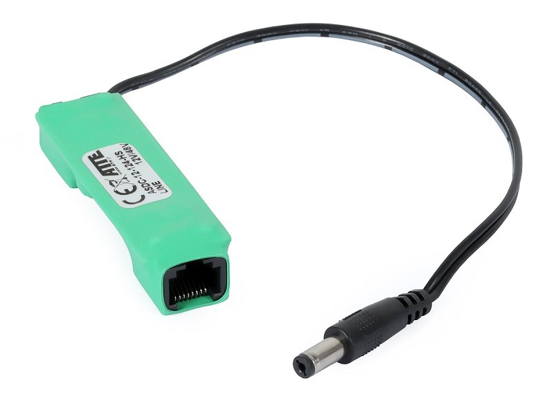 Urządzenie obniża do 12 V napięcie na wtyku DC i jednocześnie przenosi zasilanie PoE na wyjście RJ45. Umożliwia to zasilenie jednocześnie kamery IP oraz dodatkowego urządzenia zasilanego napięciem 12 V tj.: grzałka, oświetlacz podczerwieni lub mikrofon z jednej linii PoE. Urządzenie można zasilać za pomocą switcha PoE w standardzie 802.3af lub PoE PASSIVE.