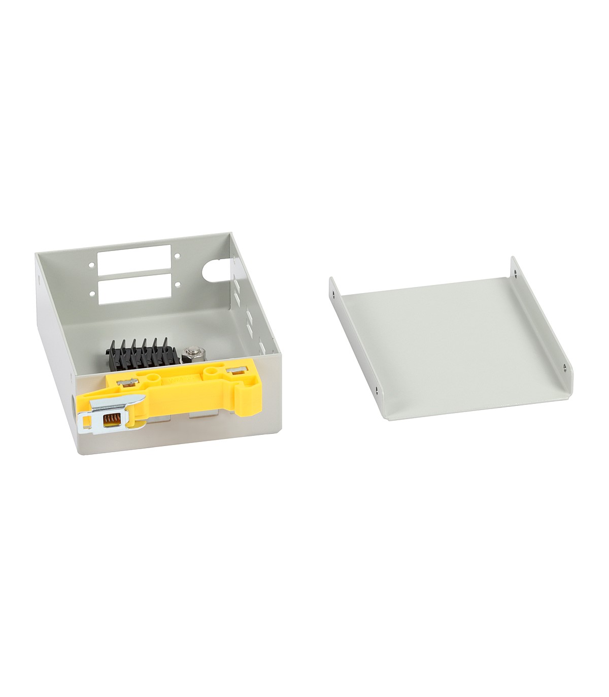 Do zestawu dołączony jest uchwyt DIN, który można montować z boku lub z tyłu, dzięki czemu możliwe jest wygodne instalowanie przełącznicy w różnego rodzaju skrzynkach teletechnicznych, szafkach multimedialnych lub szafkach elektrycznych.