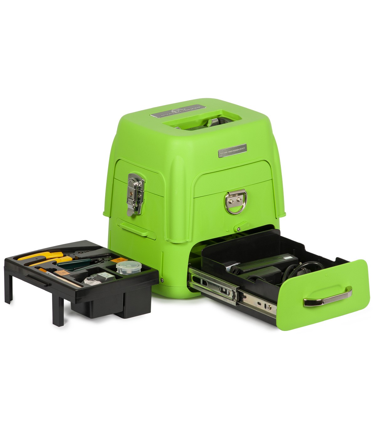 Obudowa spawarki wykonana jest z metalu, a od spodu posiada zabezpieczającą gumę. Osłona komory spawania wraz z piecykiem wykonana jest z wysokiej jakości tworzywa sztucznego. Skrzynka, która jest dołączona do spawarki, mieści, oprócz spawarki, niezbędne narzędzia, w tym zasilacz i akcesoria, które schowane są w dwupoziomowej szufladzie. Nie ma konieczności wyciągania spawarki ze skrzynki podczas spawania. Skrzynka, która wykonana jest z wytrzymałego tworzywa sztucznego, posiada rozłączny element, mogący posłużyć jako stolik bądź krzesełko.